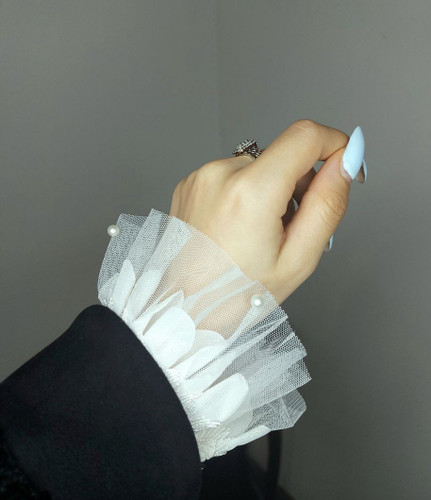 یقه فیک و دامنک وآستینک نخی زنانه مشکی و سفید