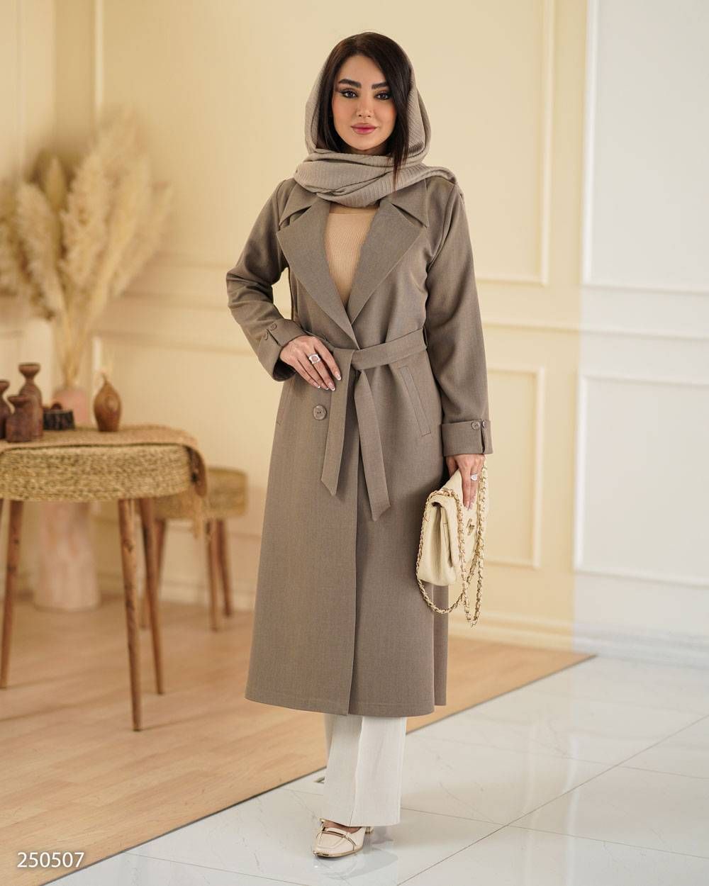 ناموجودمانتو شانتون زنانه یقه مردانه آستین پیله دار بغل چاکدار مدل مهرنیکا