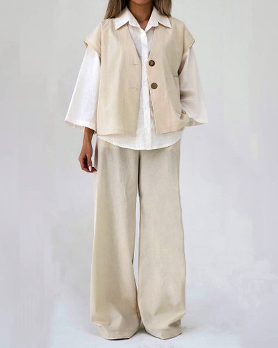 شومیز شلوار زنانه آستین بلند مدل نادین جنس لنین مراکشی