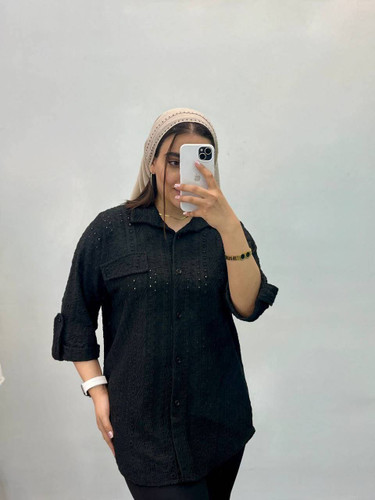 ناموجودشومیز زنانه طرح گل گچی استین بلند