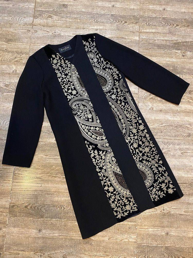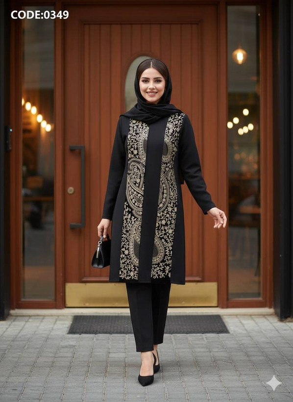 این مدل به صورت تمام دکمه طراحی شده که علاوه بر سهولت در پوشش، استایلی کاملاً پوشیده و موقر به شما هدیه میدهد. ترکیب شانتون و مخمل گلدوزی شده در جلو، جلوهای اشرافی خلق کرده که در کنار قواره بزرگ (Big Size)، اندام را کشیدهتر نشان میدهد.