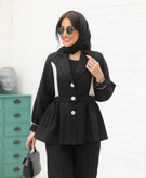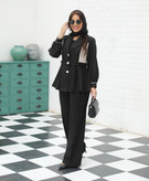 ✔️ کت با بالاتنه خوشفرم و جذب، از خط کمر به پایین آزاد با چین عروسکی برای ایجاد استایلی زنانه و شیک