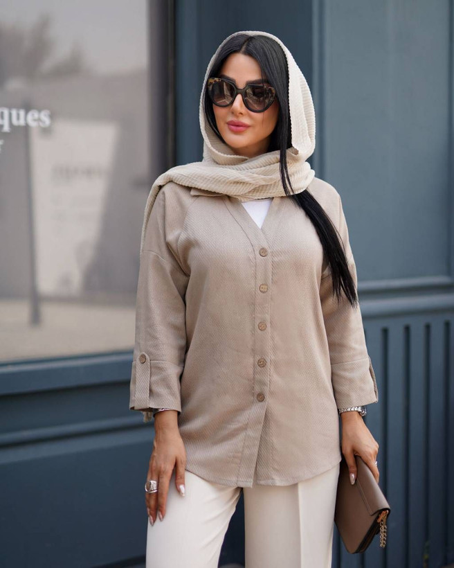👗 یقه شکاری آستین رگلان مدل پونه