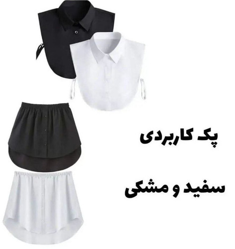 یقه فیک و دامنک وآستینک نخی زنانه مشکی و سفید