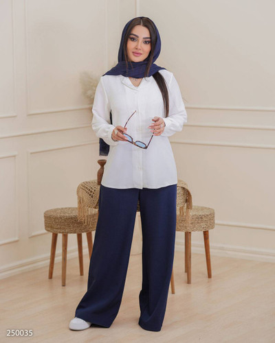 شومیز شلوار زنانه آستین بلند مدل نادین جنس لنین مراکشی