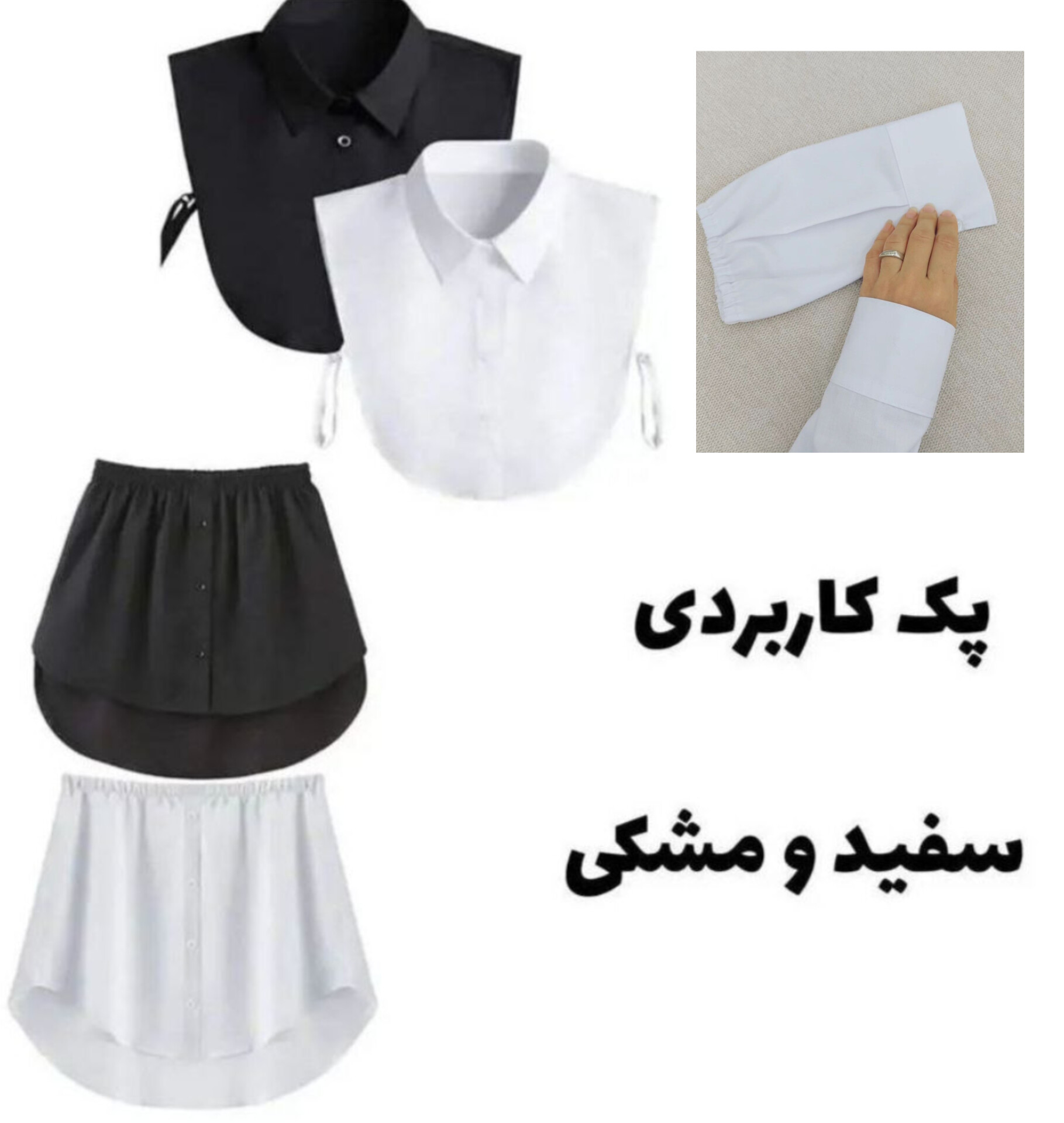 یقه فیک و دامنک وآستینک نخی زنانه مشکی و سفید