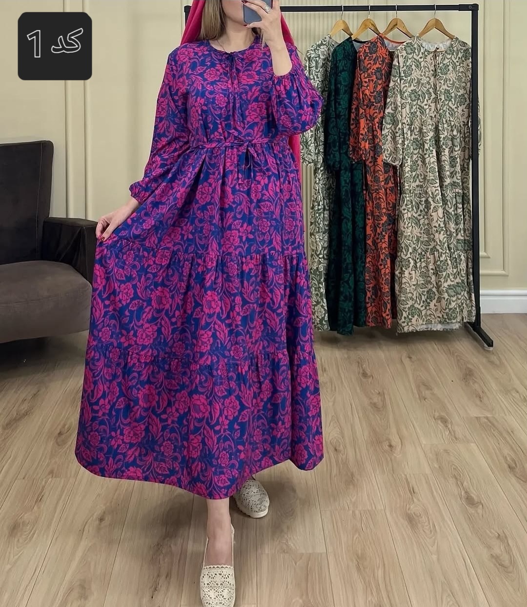 پیراهن بلند زنانه جنس شانتون نخ مدل مهتاج