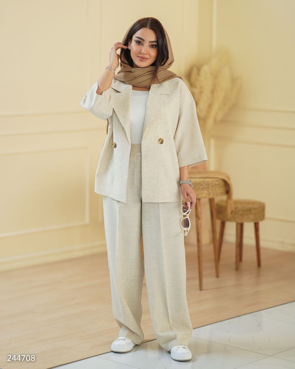کراپ کت و شلوار زنانه کتان مدل آرتیمان