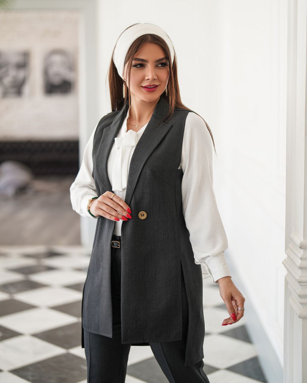 ست زنانه سهتیکه شومیز، جلیقه و شلوار مدل آلما جنس شانتون نخ